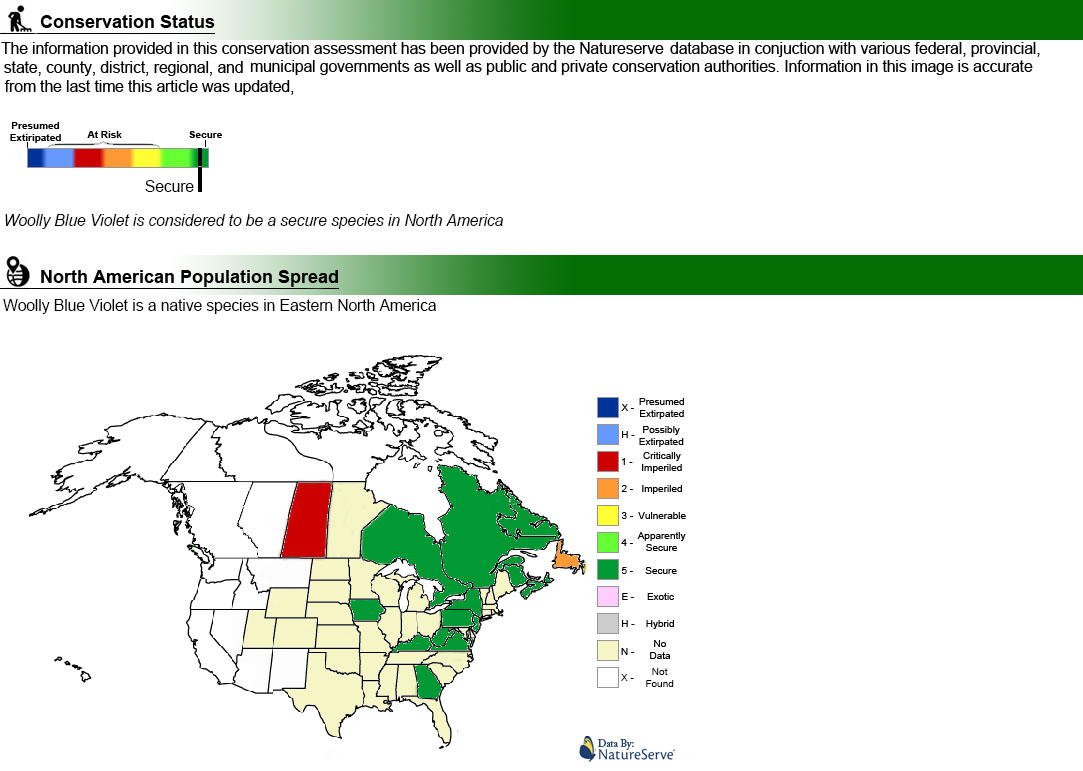 -Click here- or on the thumbnail image to see an artist rendering, from The United States Department of Agriculture, of woolly blue violet. (This image will open in a new browser tab) |