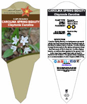 The MIROFOSS database offers free printable garden tags for personal and non-profit use. These tags can be used to properly identify plant samples in a garden. Click on the tags shown on the the screen or -click here- to download a full size jpeg image for a carolina spring beauty identification tag; which can be printed on paper or used with a plastic laser printer. |